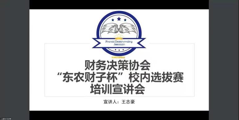 10月10日19时,财务决策协会举办了校内选拔赛线上培训宣讲会,本次培训会宣读正式比赛的相关流程及比赛规定;讲解财务决策平台的具体使用方法;介绍财务决策协会。本次宣讲会参加人数高达600余人,通过本次宣讲会,选手们充分掌握了企业从前期决策、中期采购生产、到后期账务处理的企业财务管理全流程。此外财务决策协会还建立了线上答疑qq群,为本次比赛的成功举行奠定了良好基础。