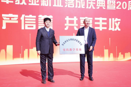 王洪亮代表学院向誉丰牧业授予实践教学基地的牌匾并讲话