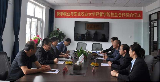 张启文与计显锋签署了校企合作协议,并代表必赢76net线路接受了誉丰牧业为学院贫困学生提供的首批10万元助学资金捐赠。计显锋回顾了在东农求学的经历,并汇报了企业近些年的发展历程,表示对双方合作前景充满期待。王洪亮和张启文分别就大学生实践教学基地建设、联合学生培养、大学生就业指导等方面与对方进行了交流和全面磋商,表示学院会全面提供人力智力资源、全力支持校友企业发展。