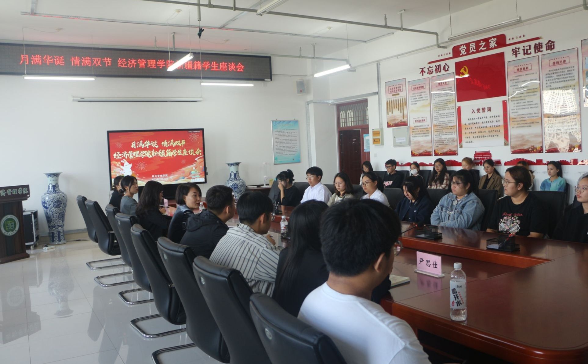 少数民族新生代表、老生代表与经济困难学生代表交流了学习生活情况,表达了对学校、老师的感恩之情,决心继续努力学习并持续提升自己,为实现个人价值而努力奋斗。