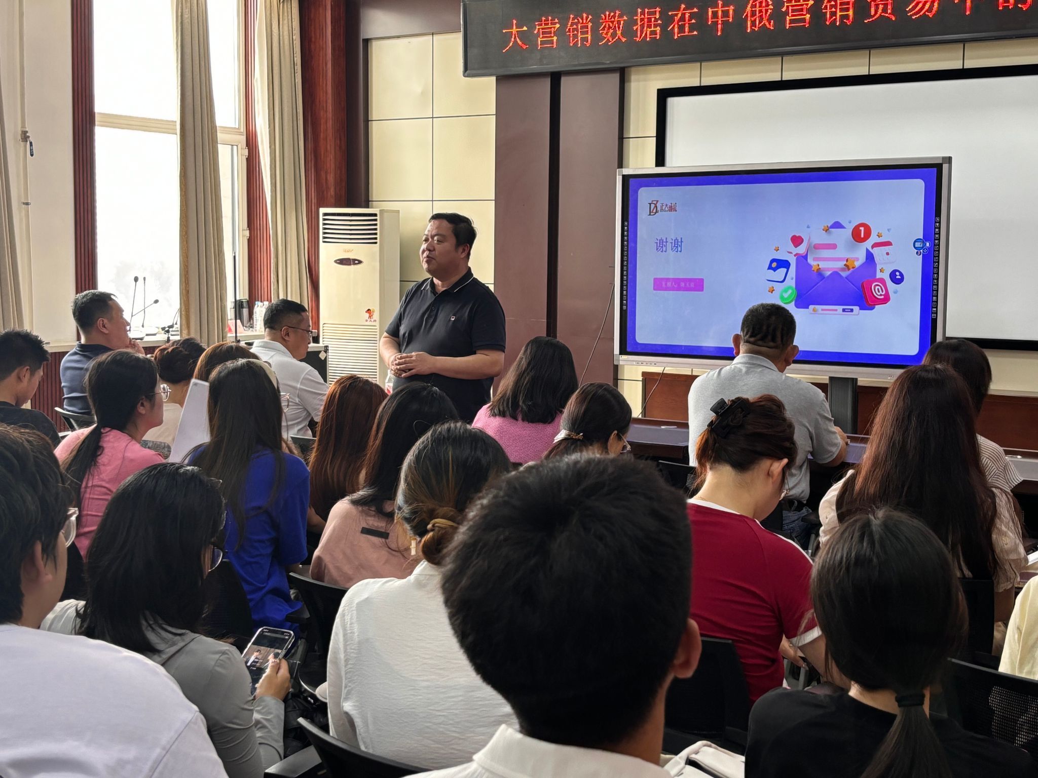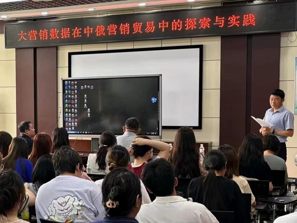 邵建国以《大营销数据在中俄营销贸易中的探索与实践》为题,分享了19年来在市场营销领域的实战经验,讲述在俄罗斯市场成功开发中国干海产品的历程,强调数据驱动、精准营销的重要性,通过分析行业报告和海关数据,确定目标客户,并实施定制包装、电话销售和在线广告等一系列创新的市场策略,实现了市场份额的大幅提升。他表示,希望大家珍惜在校时光,认真学习专业知识,关注市场前沿,积极实践,不断提升自己的专业素养和能力。