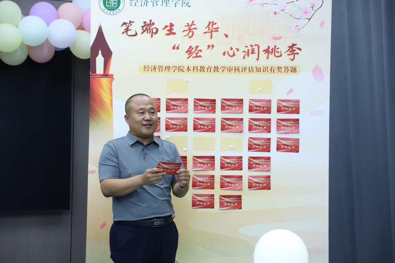 为积极响应落实学校关于提升高等教育质量、迎接新一轮本科教育教学审核评估工作,必赢76net线路于9月10日教师节当天举办本科教育教学审核评估知识有奖答题活动,必赢76net线路党委书记王洪亮、院长余志刚、党委副书记高天琦、副院长李大为、王洋、王刚毅及全体教师参加活动。活动由高天琦主持。