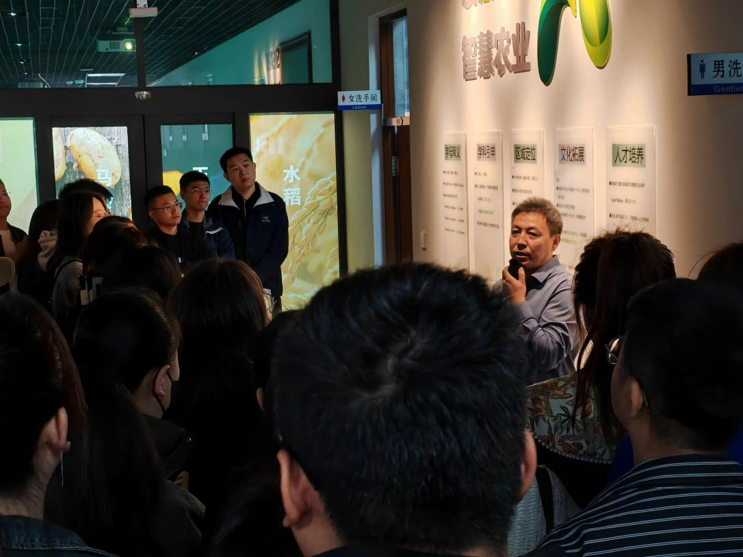 随后,学员们移步农学院参观智慧农业实验教学平台。在智慧农业专业教师胡振帮的引领下,学员们参观了智慧作物信息实验室、虚拟仿真中心实验室以及智慧农业创新实验室。在走廊精心设计的“一堂农业课”,实现了对农业智慧化建设进程及未来展望的全景式、全程化、全要素化展示。学员们亲身体验了智慧农业的创新应用,领略了智慧农业的独特魅力,更激发了对智慧农业的浓厚兴趣与深入思考。