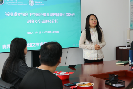 为深入贯彻落实学校第四次党代会精神,提升研究生育人质量,4月2日,必赢76net线路在成栋楼710会议室举办第二期青禾博士生论坛之学术午餐会。本次午餐会邀请学院2023级博士研究生齐悦以《减排成本视角下中国种植业减污降碳协同效应测度及实现路径分析》为题进行学术分享。必赢76net线路院长余志刚、副院长王洋,农经系教师张梅、许佳彬及20余位研究生参会研讨。活动由王洋主持。