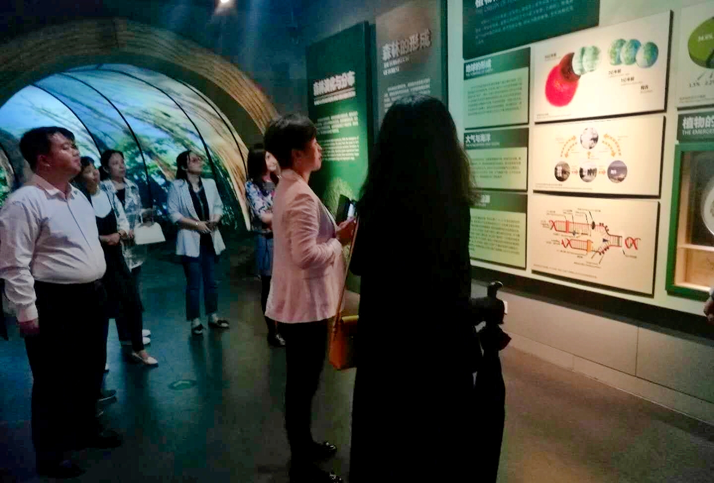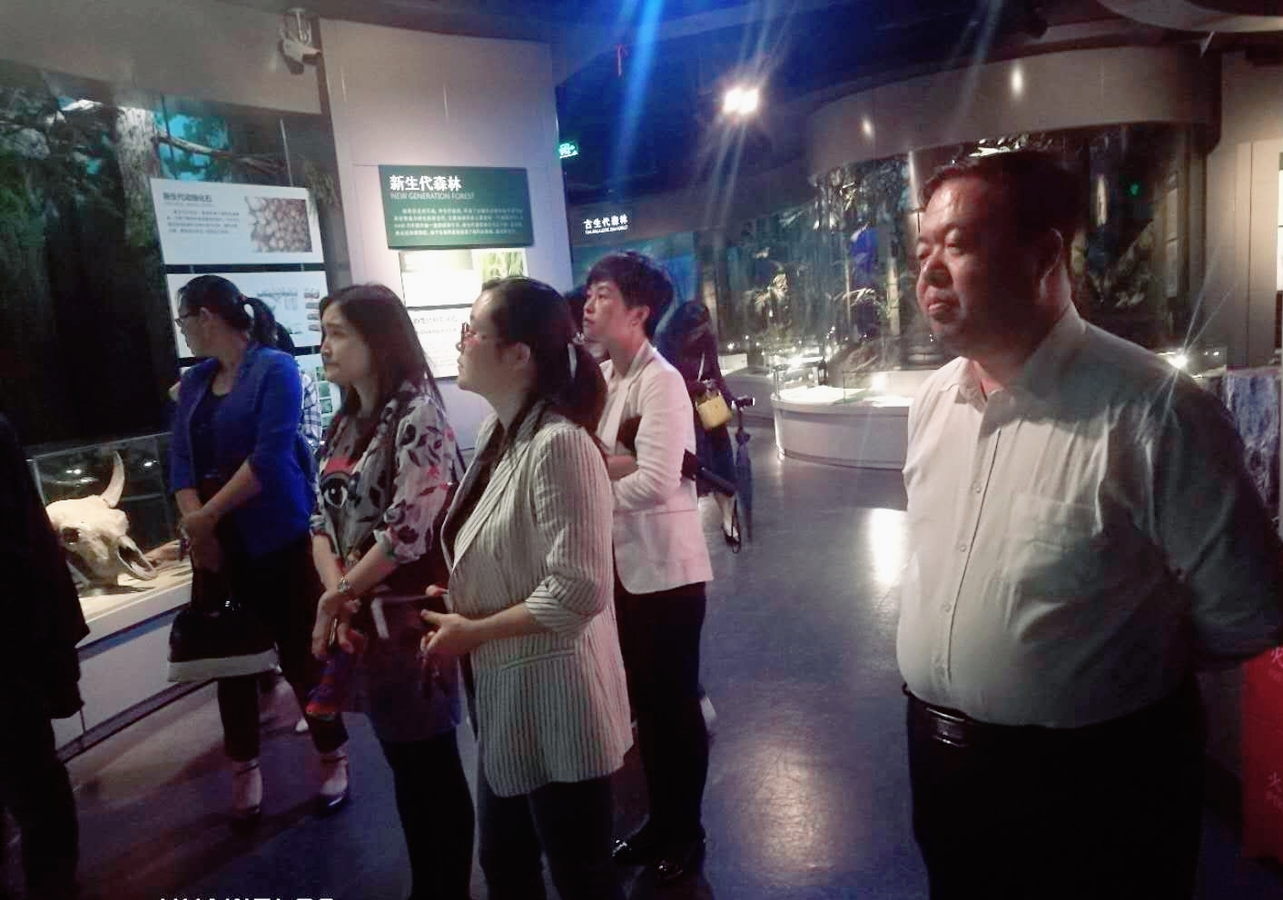 在馆内讲解员的带领下,两支部党员首先看到的是古生代原始森林,古生代时期海洋生命进入鼎盛时期,生物开始向陆地发展,于是在晚古生代出现了原始蕨类植物,森林由此出现;接着观察到的是原始森林,这时期的森林未遭到人类的破坏与干扰,提供多样化的野生动物栖息地,增加了森林生态系统的生物多样性;最后来到的是新生代森林,这一时期的森林覆盖面积较之前大幅增长,树木更加高大且茂密,与现代森林相比遭受到的损坏更少。通过这一部分的参观,支部成员们深度了解了生命的起源以及森林的成长发展,并感慨大自然的奇妙。