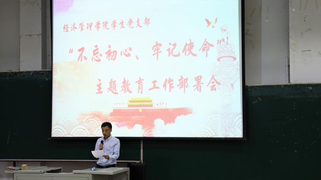 会上,杨秀坤首先传达学校“不忘初心、牢记使命”主题教育动员会精神,重点传达了本次主题教育的总体要求,从开展主题教育的坚持方向、根本任务、目标等三方面展开,要求本次主题教育着力解决学生党员自身存在的问题,坚持思想建党、理论强党、坚持发扬艰苦奋斗的革命传统和优良作风等五个坚持方向。引导学院学生党员焕发干事创业的朝气,勇担兴院强校的责任,牢记世界一流学科和高水平大学建设的使命与担当。