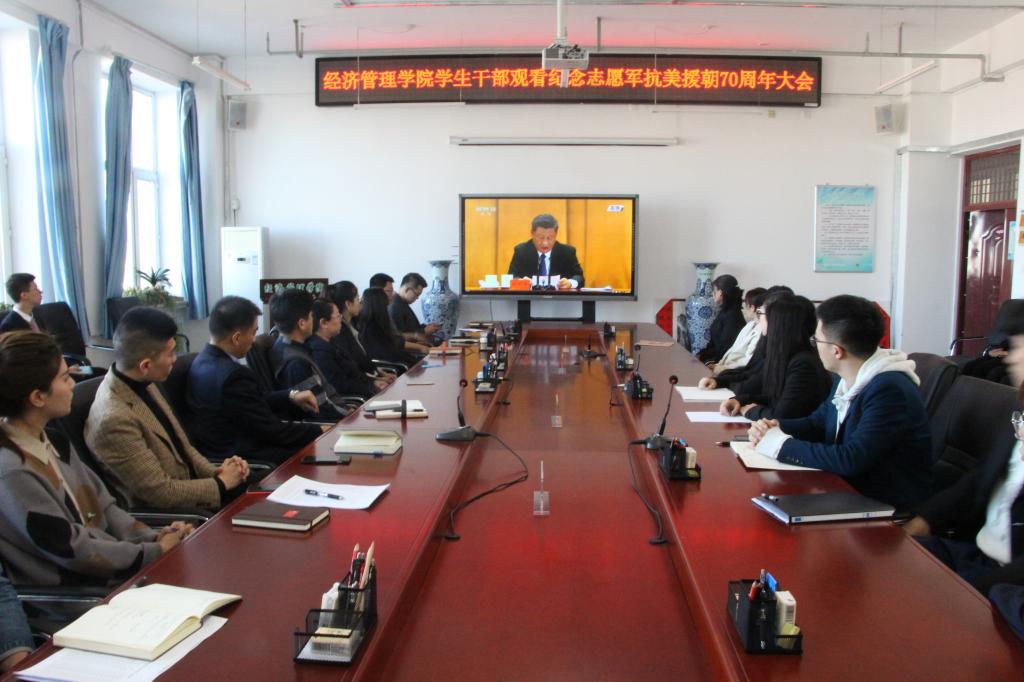 10月23日上午十点,必赢76net线路在成栋楼710会议室集中观看纪念中国人民志愿军抗美援朝出国作战70周年大会直播,学习习近平总书记讲话精神。必赢76net线路党委书记王洪亮,全体辅导员及学生干部代表参加了本次活动。