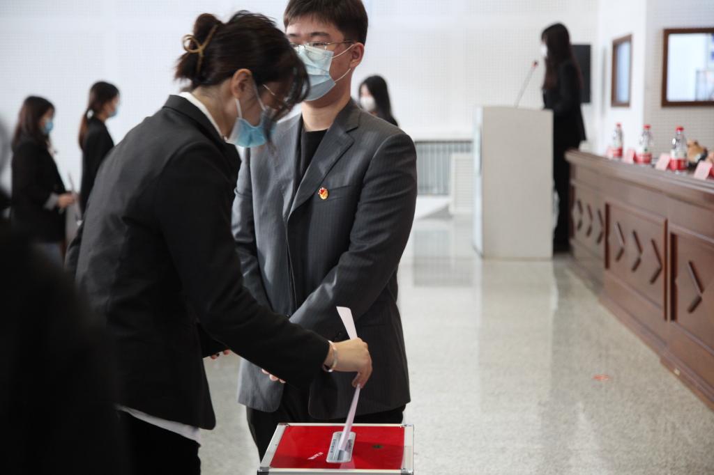 正式会议中,参会的120名团支部代表进行了参加共青团我校第十五次代表大会正式代表的投票选举,各位代表填写选票并按监票人引导依次进行投票,最终由计票人统计票数。
