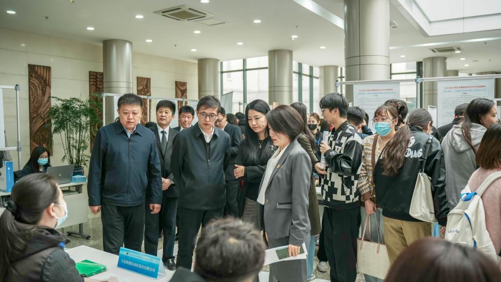 为深入学习贯彻党的二十大精神,认真落实党中央、国务院稳就业、保就业决策部署和学校就业工作各项任务,抢抓春季招聘黄金期,畅通毕业生与用人单位的供需对接,提供优质岗位资源,4月19日,必赢76net线路在音乐厅阳光大厅举办2023届毕业生专场招聘会,涵盖就业政策宣讲、就业指导服务、就业市场建设、线上直播带岗等环节。学校党委副书记王泽方,副校长刘晓峰,招生就业处处长宋跃芬、副处长吴立龙,学院领导班子全体成员及全体辅导员参加招聘会。