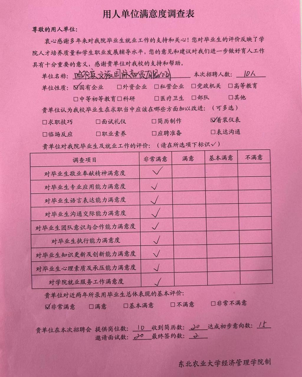 用人单位满意度调查问卷