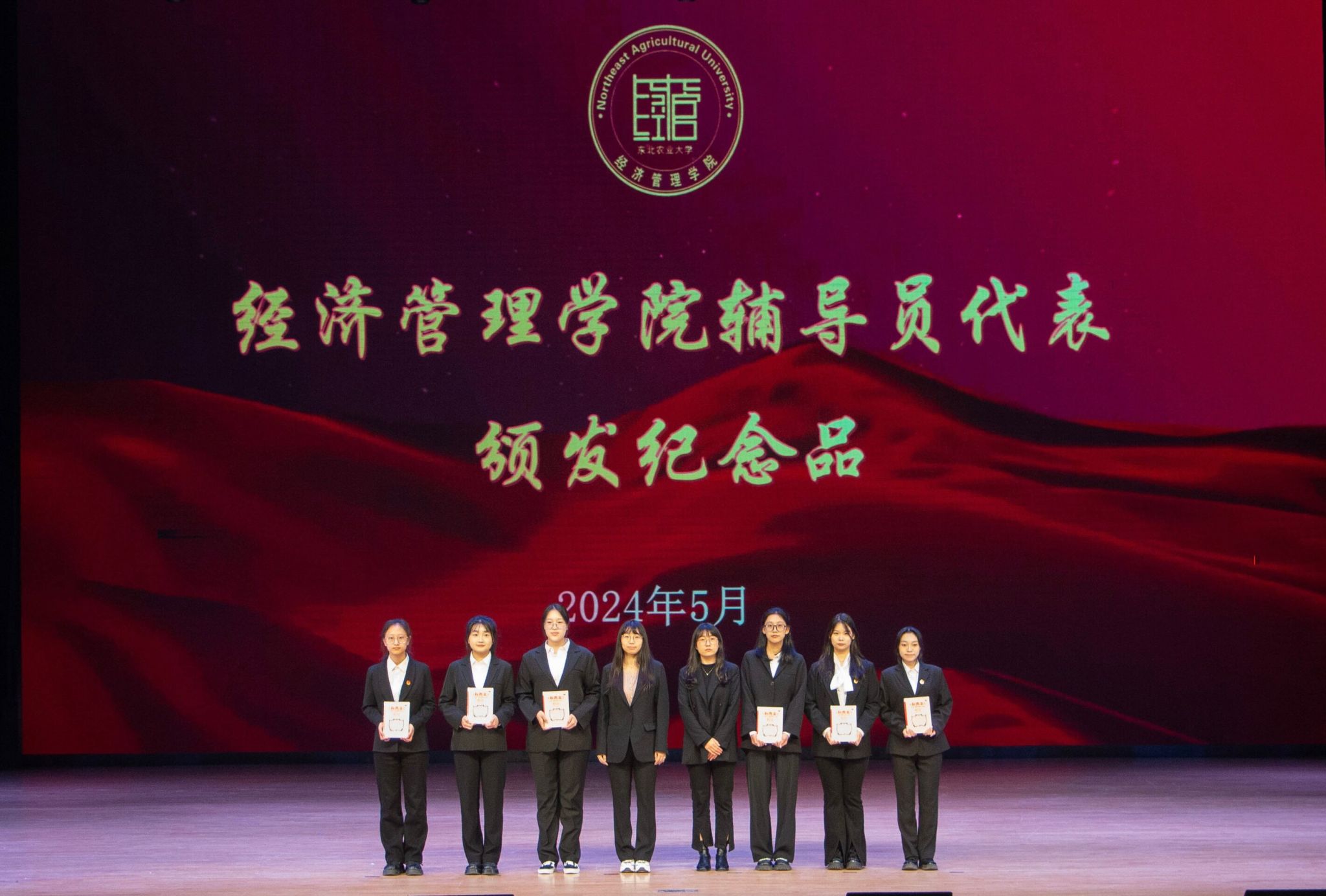 学院辅导员代表宋春晓、樊可欣为六名国家励志奖学金获得者颁发纪念品