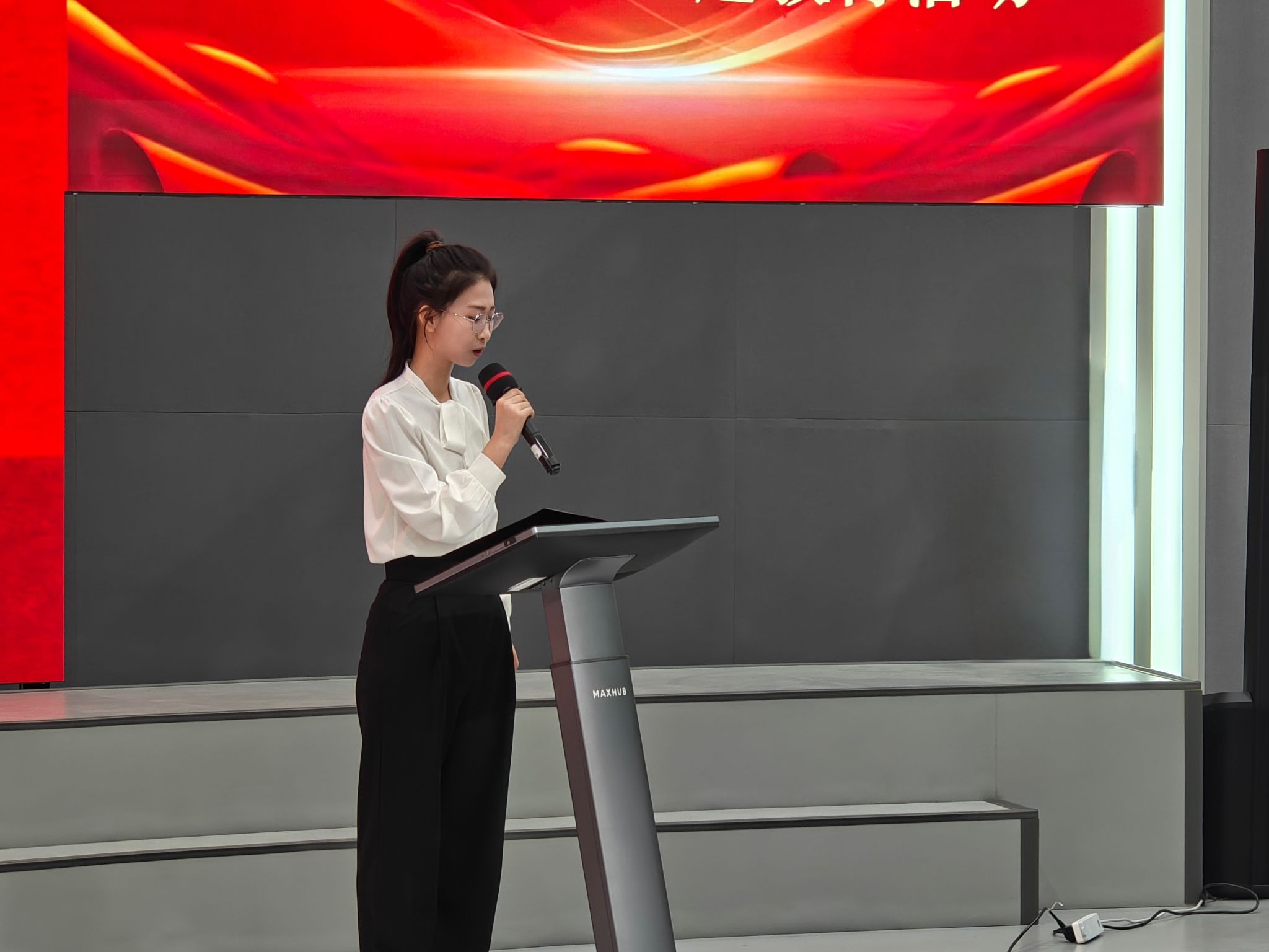 毕业生党员代表韩雨杉发言。她代表全体2020级毕业生表达了对母校的眷恋与对党组织的感激之情,并郑重承诺,将时刻铭记党的教诲,不忘初心、牢记使命,以满腔热忱和坚定信念,肩负时代使命,不负青春誓言。