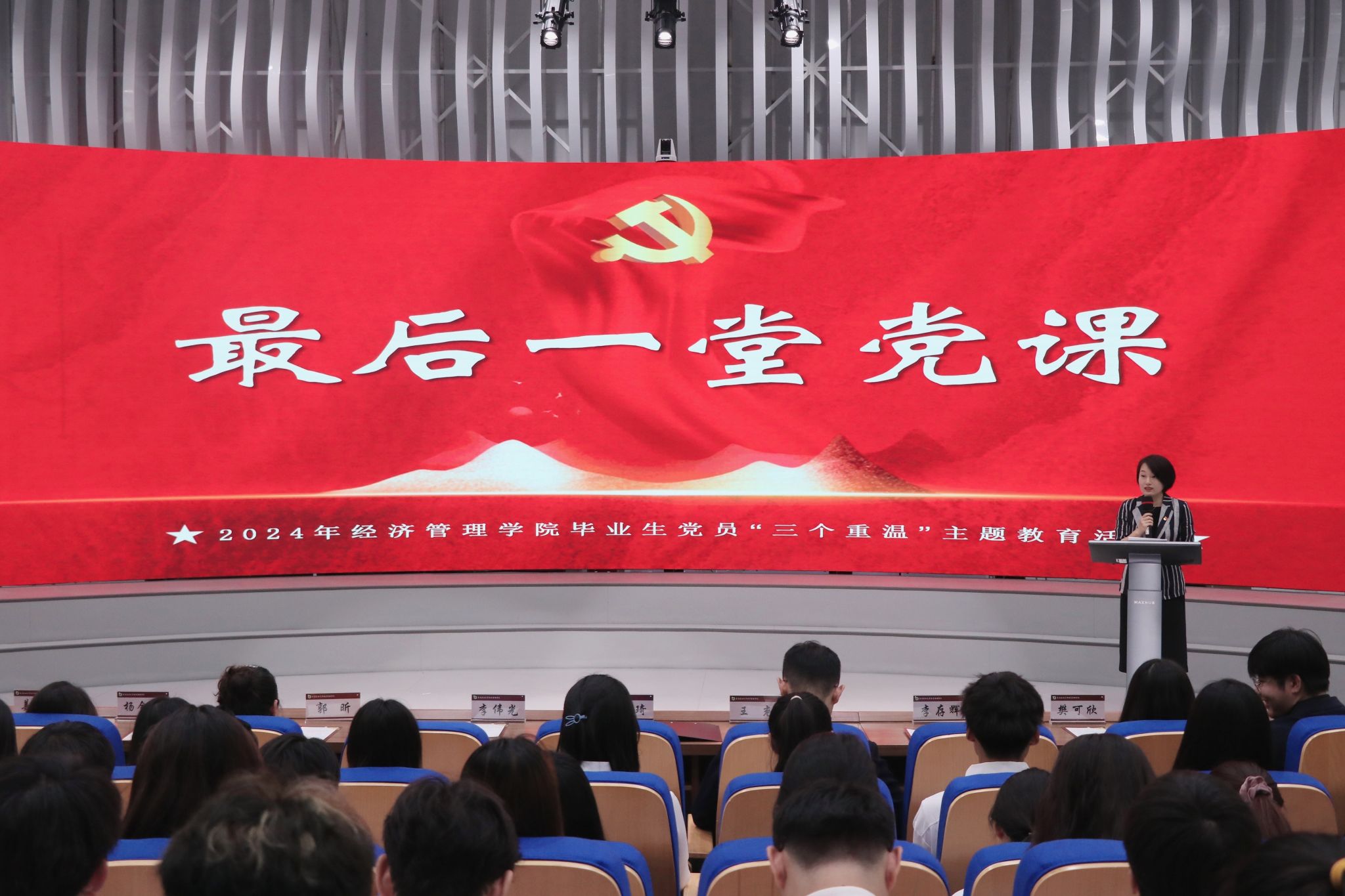 高天琦为毕业生党员讲授在东农校园的最后一堂党课。她对毕业生党员们提出三点希望,一是要自觉主动地肩负起共产党员身份与职责,坚持以习近平新时代中国特色社会主义思想为指导,以党章党纪要求自身,努力成为党和国家建设的中坚力量;二是积极投身到党和人民的事业中去,并从赤子情怀、大爱情怀、进取情怀三个方面对毕业生党员们提出殷切期望;三是激励学生党员勇于担当作为,敢于书写新篇,以青春力量,创建青春之国家,青春之民族。