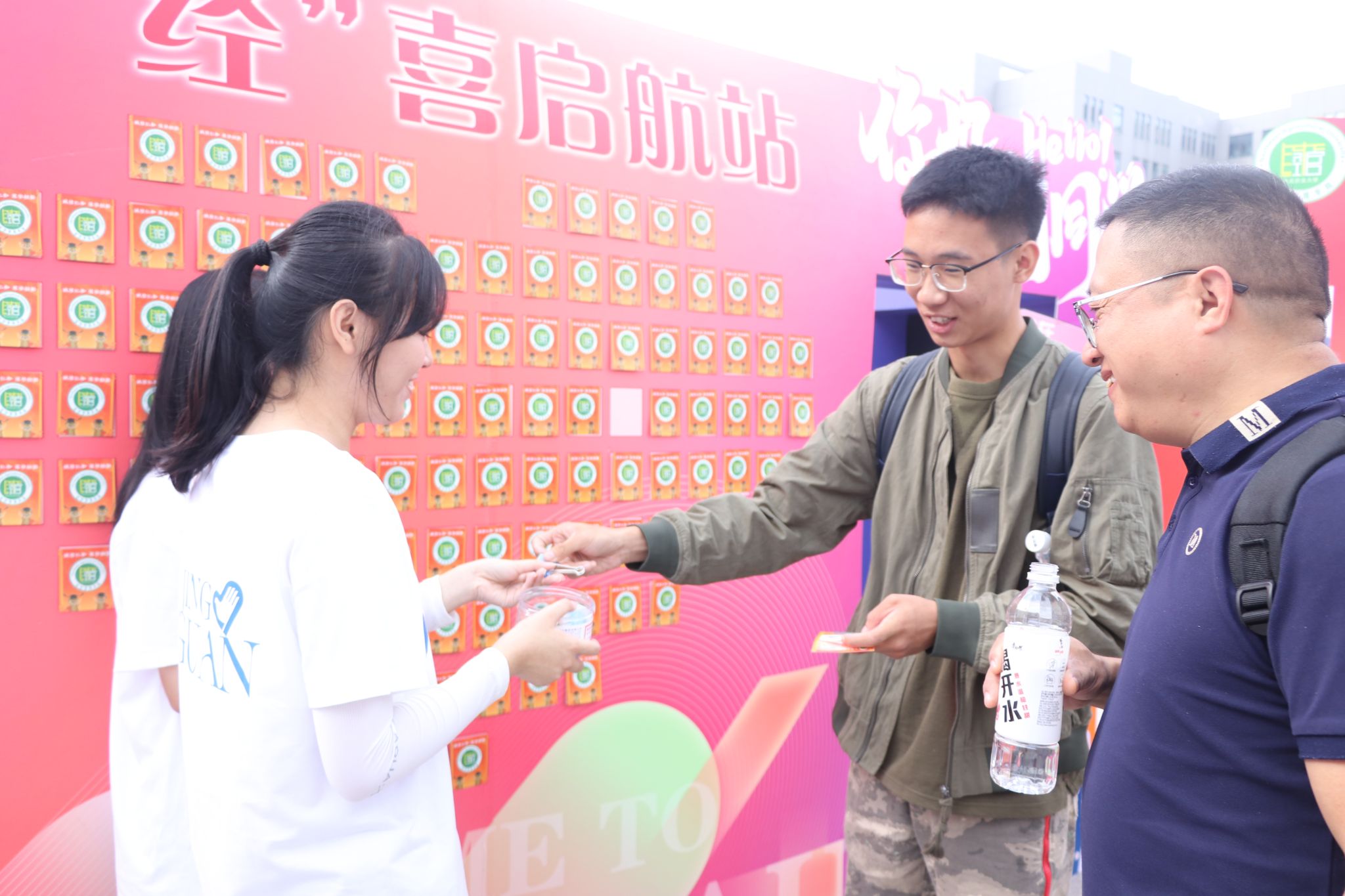 报道现场氛围热烈,彩旗飘扬,横幅高挂,处处洋溢着热烈而温馨的氛围。学院坚持以“入校体验”促进“价值认同”,报到现场印有学院简介、师资力量、学生工作的迎新宣传板,切实增强新生对学院的认同感、归属感;制作2024届考公、升学光荣榜,引领新生从朋辈榜样中汲取力量;现场设置“经英齐汇聚,管梦启航程”的合影留念处,同学们纷纷与家长在此处留下进入大学的第一张合影,定格每一张青春洋溢的面孔、每一个美好灿烂的微笑,在这里见证与学院的初见。学院设置“经”喜启航站,同学们报到后可在现场进行“刮刮乐”,刮开学院为新生准备的专属礼物,包含“印有校徽院徽的钥匙扣、印有学院logo的本和笔”,激发新生参与的热情与体验,让新生感受到学院关怀和温暖的同时,也点燃了新生对大学的期待。学院招募58名班级助理,400余名志愿者,他们与新生“一对一”精准对接,“点对点”专项引导,有序进行资料收敛、礼品装袋,高质量、高效率引导新生办理各项手续、帮助新生搬运行李物品、积极为新生答疑解惑,一张张热情的笑脸,一句句亲切的问候,多角度、全方位为新生提供方便快捷的暖心服务,持续递人文关怀,感受经管温度。
