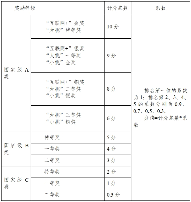 参加国家级大学生竞赛获奖前五名可加分,同一成果在不同大赛获奖不可累计。评分标准见附表7。