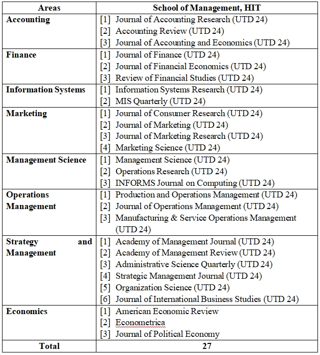 哈工大管理学院高水平国际期刊(A类期刊)列表
