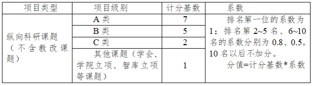 课题仅限学生本人主持或参与的纵向科研课题(不含教改课题),每名学生限报自己认为最重要的三项予以加分。课题依托单位应为我校,主持人为第一名,其他人员顺次排序。课题预计的执行周期与成果规定期限有交集的均可加分,但立项时间不在成果规定期限且尚未拿到结项证明的延期课题不予计分。课题证明材料需要包含课题预计执行周期信息和成员排序,且要有相关部门签章。纵向科研课题评分标准见附表2。